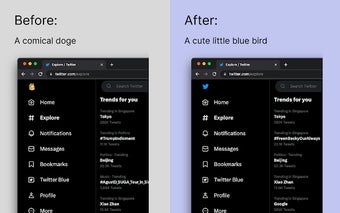 크롬에 이 확장 프로그램을 설치하기만 하면 사용자는 더 이상 트위터에서 도지 로고를 보지 않게 됩니다. 대신, 이 확장 프로그램은 트위터로 알려진 상징적인 파란색 새로 자동으로 대체합니다. 이 변경으로 인해 트위터의 클래식한 모습과 느낌이 되살아나며, 사용자들에게 더욱 향수를 불러일으키는 경험을 제공합니다.